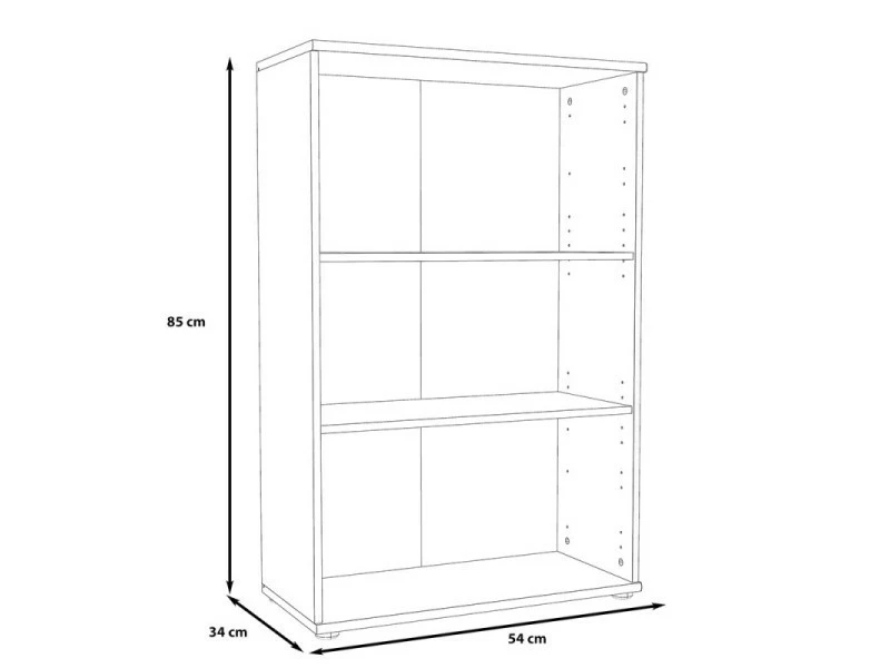 - DIMENSIONS GÉNÉRALES APPROXIMATIVES : longueur 54 cm x hauteur 85 cm x profondeur 34 cm. Epaisseur tablettes 1.5 cm / Epaisseur côtés 1.4 cm.