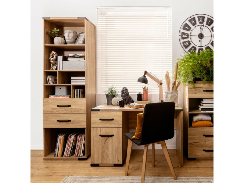 Bibliothèque 2 tiroirs Dako Bois et Noir