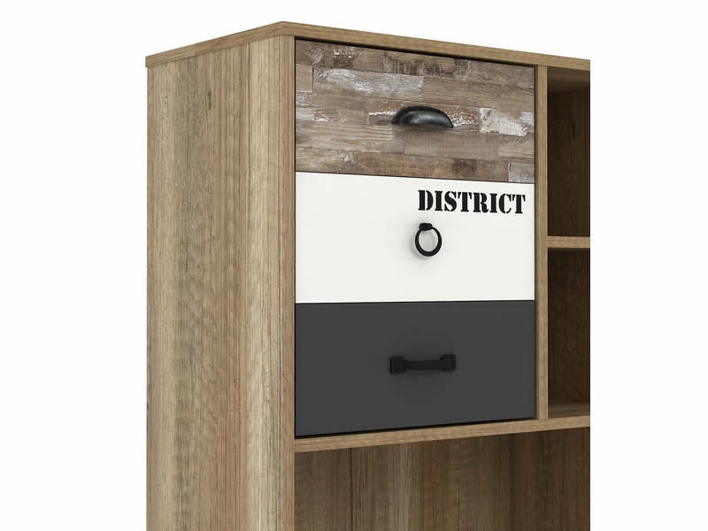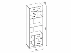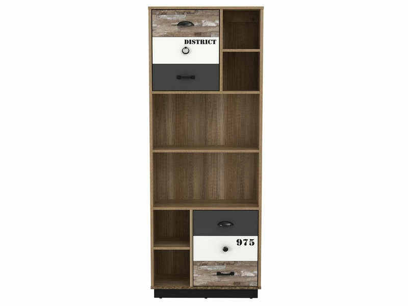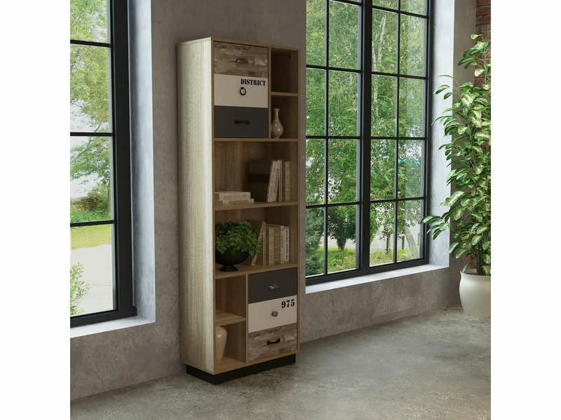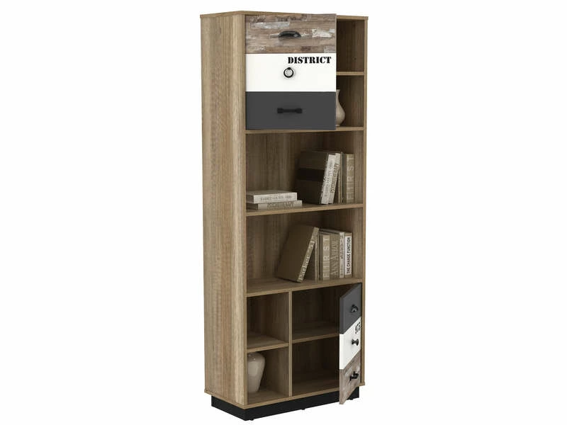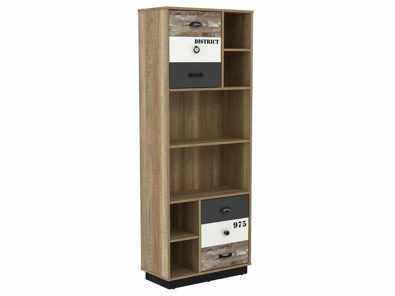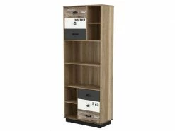Apportez une touche « manufacture » à votre intérieur avec cette bibliothèque à l’inspiration industrielle! Avec grande hauteur et sa largeur restreinte, elle trouvera aisément sa place dans tous les espaces. Pratique, elle est dotée de six niches ouvertes et de quatre rangements supplémentaires derrière deux portes battantes trompe-l’œil. Sa structure à l’aspect bois naturel et ses poignées en métal lui confèrent un style authentique aux finitions soignées.