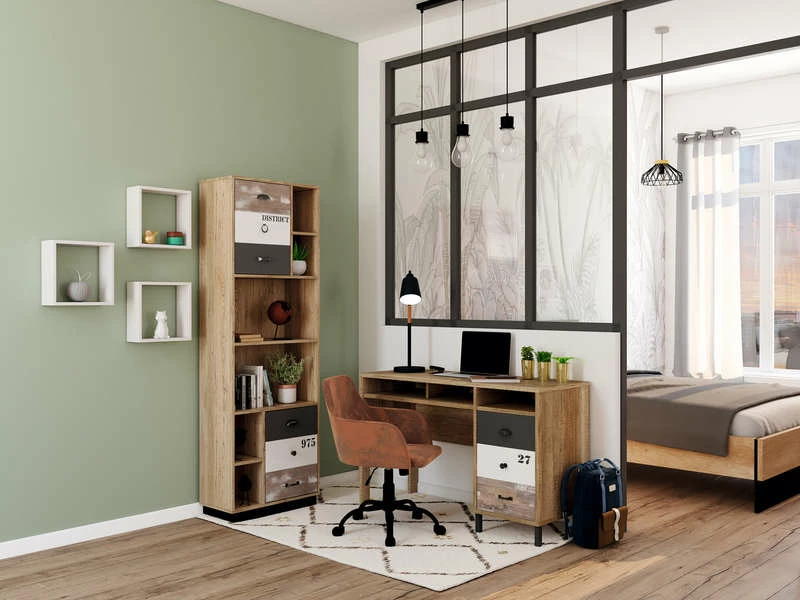 Associez cette bibliothèque aux autres meubles de la collection OLDY pour une ambiance 100% atelier industriel.
