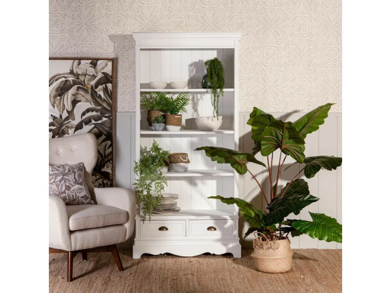 Mariant un teinte blanche et une esthétique très nettement inspirée du mobilier ancien cette bibliothèque sera parfaite pour compléter une ambiance shabby chic ou même pour apporter de la modernité au sein d’un ameublement classique.