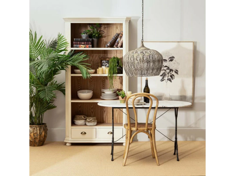 Apportez de la chaleur dans votre salon avec cette bibliothèque 3 étagères 2 tiroirs très nettement inspirée des meubles de style.