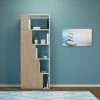 Bibliothèque 3 tiroirs avec LED Helios Blanc laqué et Bois