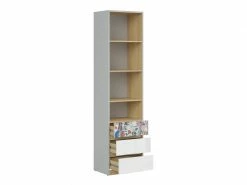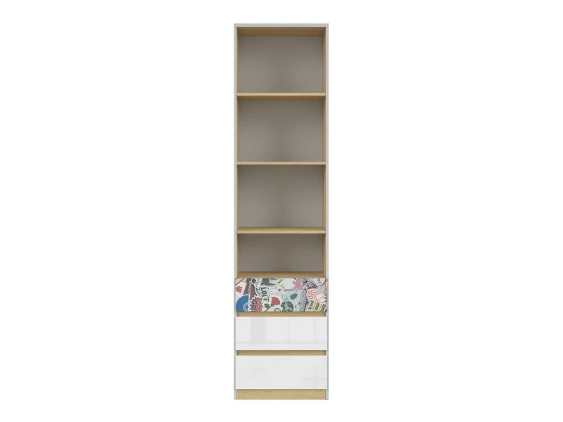 Bibliothèque 3 tiroirs Pop Gris, Blanc et Sticker