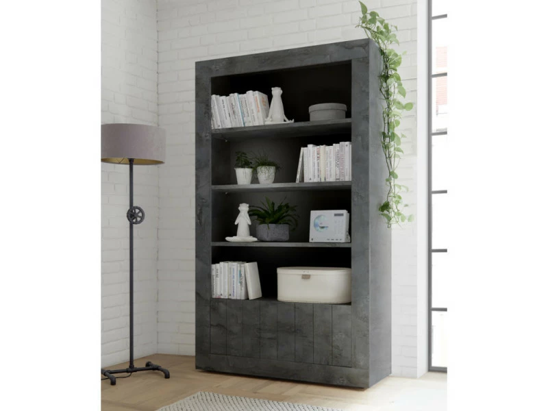 Adeptes des matériaux bruts et du design minimaliste cette bibliothèque 4 étagères 2 portes saura satisfaire vos attentes.