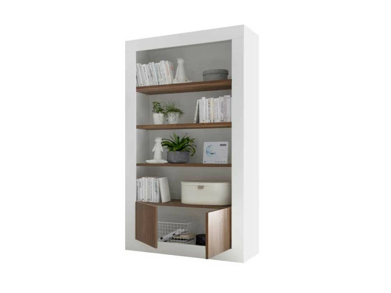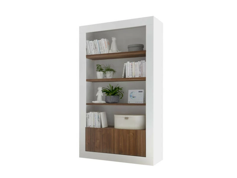 Adeptes des matériaux authentiques et du design minimaliste cette bibliothèque 4 étagères 2 portes saura satisfaire vos attentes.