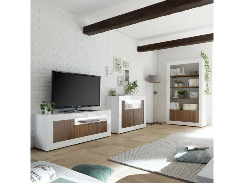 Lumineuse et contemporaine la véritablelaque teinte blanc brillant apportera de la clatré dans votre salon tout en modernisant le design de ce meuble mariant les styles.