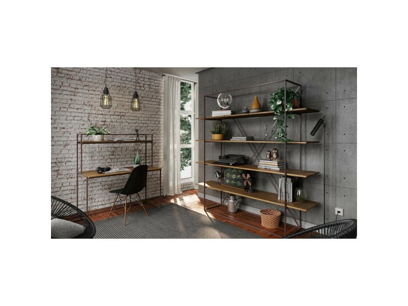 Une bibliothèque fine et aérée qui n’alourdira pas votre espace. Constituée de 4 tablettes en pin et d’une structure en métal marron, cette bibliothèque sera parfaite pour habiller les murs clairs de votre salon ou bureau. On aime sa structure en métal aux formes géométriques. Invitez la simplicité sous votre toit !