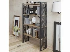 L’étagère bibliothèque Vestigium maille 4 tablettes Mélaminé Noyer et Métal Noir, jolie et pratique à la fois, trouvera sa place dans une entrée, une chambre, un salon et même une salle de bain ! De quoi faire régner l’ordre dans toute la maison, surtout les habitats aménagés façon bobo chic !