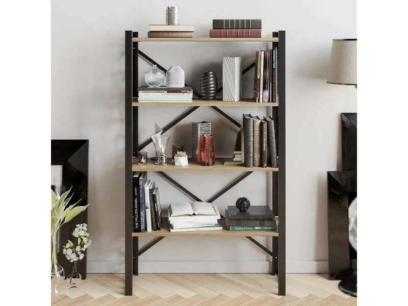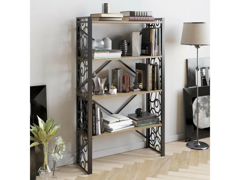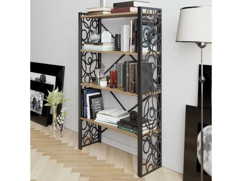 L’étagère bibliothèque Vestigium entrelacs 4 tablettes Mélaminé Blanc et Métal Doré, jolie et pratique à la fois, trouvera sa place dans une entrée, une chambre, un salon et même une salle de bain ! De quoi faire régner l’ordre dans toute la maison, surtout les habitats aménagés façon industriel chic