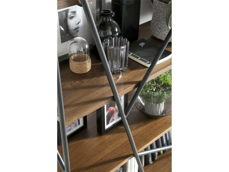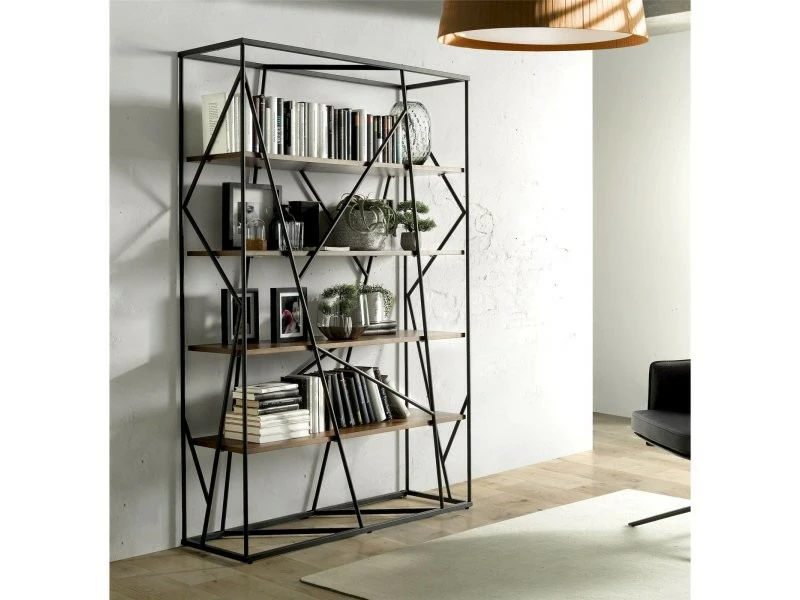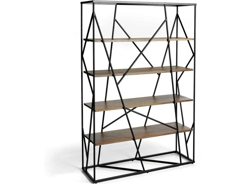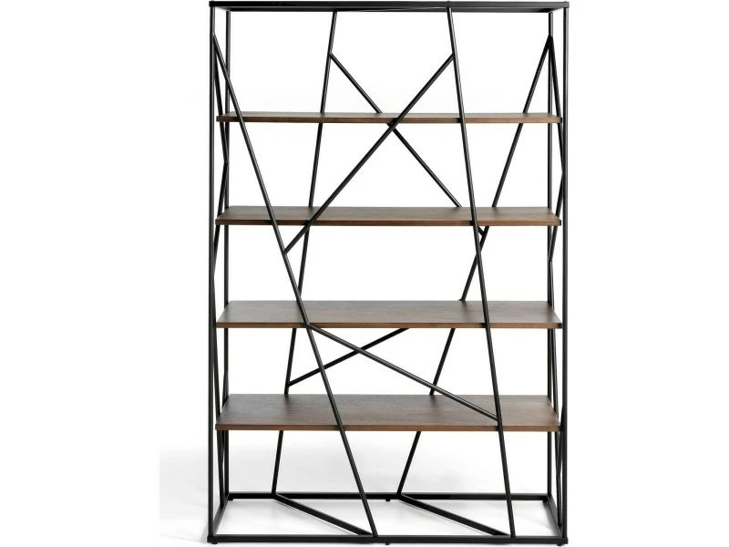bibliothèque en acier peint en Ă©poxy noir et Ă©tagères en placage dm et noyer.. . . . uniquement pour usage domestique. nettoyage uniquement avec un chiffon doux ou du papier absorbant legerement humide d’une solution savonneuse netral. ne pas utiliser d’ammoniaque, d’eau de javel, de solvants ou de produits abrasifs. Longueur : 120 x Largeur : 38 x Hauteur : 180