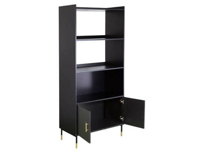 Bibliothèque avec 2 portes en bois / fer coloris Beige. A monter soi-même. Facile à installer. Dimensions: Longueur 80 x Profondeur 40 x Hauteur 180 cm Matière: MDF / fer / frêne Couleur: beige Poids : 45 Kg