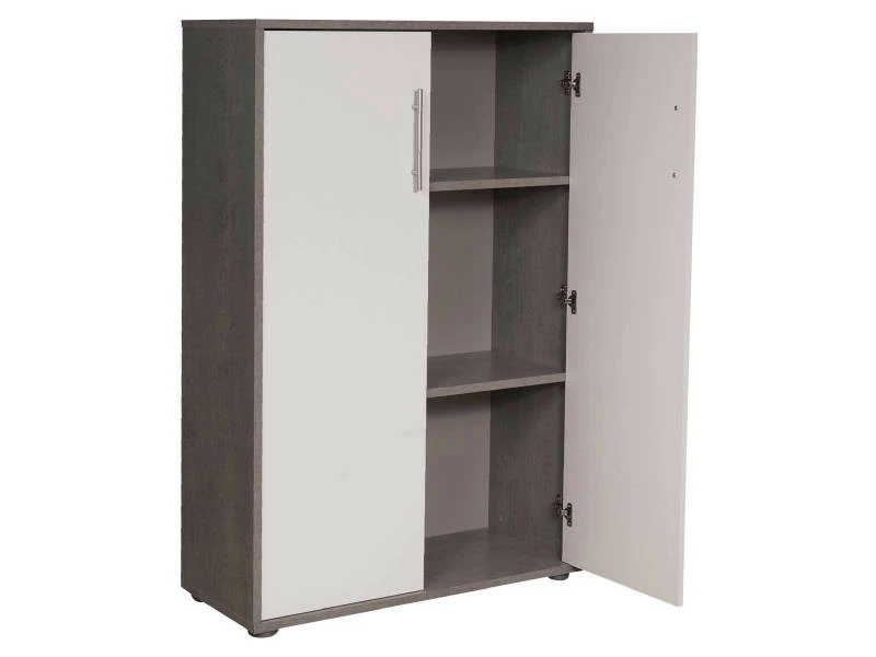 Bibliothèque parfaite pour le bureau ou le salon, idéale pour ranger vos livres ou documents. Pratique : les deux portes et les deux étagères vous permettent d’utiliser au mieux l’espace disponible, en évitant de laisser des espaces inutilisés. Fonctionnel : montage simple et rapide, il résiste dans le temps et se nettoie facilement. Style unique garanti par le matériau stratifié blanc et béton, parfait pour n’importe quelle pièce de votre maison ou bureau. Construit entièrement, le stratifié est résistant aux chocs et aux rayures et durable – Dimensions en cm : 79x34h188