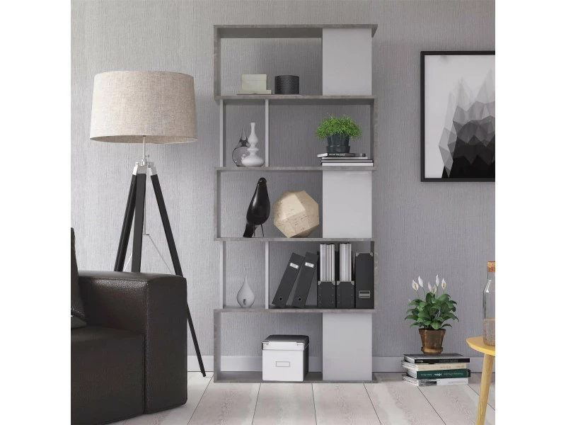 Bibliothèque moderne avec cinq étagères asymétriques, développée en couleur chêne avec des détails noirs. Solution parfaite aussi bien pour être placée dans le salon que dans la chambre, elle donnera une touche de style à votre intérieur. Moderne et élégant, essentiel pour toute maison. Entièrement réalisé en stratifié, il résiste aux chocs et aux rayures et est durable dans le temps. Mesure 80 x 175 x 29,5 cm