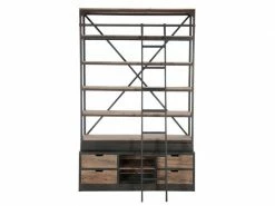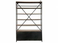 Impact visuel saisissant assuré dans votre salon avec cette bibliothèque ouverte de style Industriel qui met en oeuvre du métal teinté noir, patiné et des étagères en bois teinte naturelle qui fait ressortir un veinage exclusif.