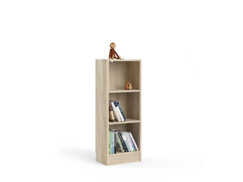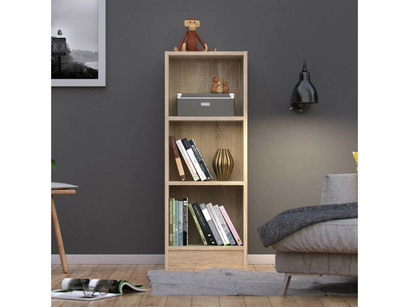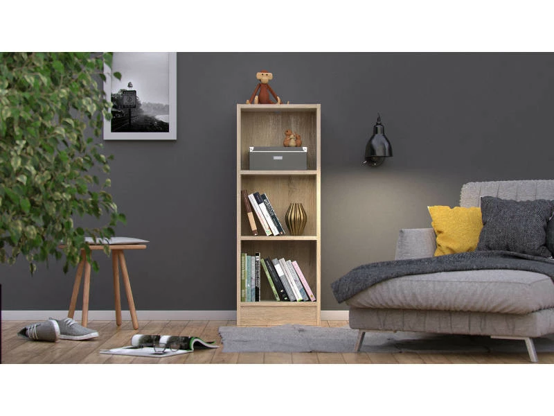 Bibliothèque, couleur chêne, 40,6 x 107,2 x 26,72 cm. Bibliothèque essentielle avec deux étagères aux lignes très simples qui rappellent un style moderne. Solution idéale pour le salon et la chambre, il est parfait s’il est placé dans des environnements modernes et lumineux. Entièrement réalisé en stratifié, il est durable dans le temps, résistant aux chocs et aux rayures et est facile à nettoyer.