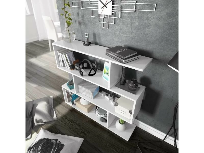 Bibliothèque fonctionnelle de style moderne, construite avec une attention particulière Ă sa composition. ComposĂ© de trois grands compartiments, il est idĂ©al pour ranger vos bibelots ou vos livres de manière innovante et ordonnĂ©e. Sa particularitĂ© dĂ©coule de l’assemblage asymĂ©trique de chaque Ă©tagère qui la rend unique en son genre. Convient pour meubler le salon et la chambre, Construit entièrement en stratifiĂ©, il rĂ©siste aux chocs et aux rayures et est durable dans le temps, avec des plots en ABS anti-bruit et anti-rayures dans la partie infĂ©rieure du meuble. Mesure 110 x 97 x 25 cm