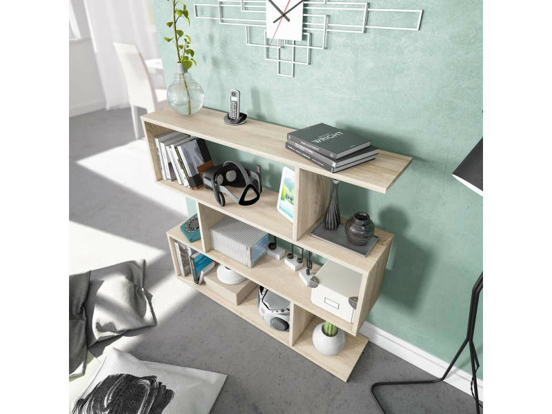 Bibliothèque fonctionnelle de style moderne, construite avec une attention particulière Ă sa composition. ComposĂ© de trois grands compartiments, il est idĂ©al pour ranger vos bibelots ou vos livres de manière innovante et ordonnĂ©e. Sa particularitĂ© dĂ©coule de l’assemblage asymĂ©trique de chaque Ă©tagère qui la rend unique en son genre. Convient pour meubler le salon et la chambre, Construit entièrement en stratifiĂ©, il rĂ©siste aux chocs et aux rayures et est durable dans le temps avec des plots en ABS anti-bruit et anti-rayures dans la partie infĂ©rieure du meuble. Mesure 110 x 97 x 25 cm