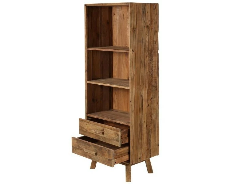 Bibliothèque en pin recyclé 3 niches, 2 tiroirs Nebraska // Dimensions : 60 x 40 x // Finition : // Couleur : Naturel foncé // Poids emballé : 35 kg // Utilsable en extérieur : Non // Informations additonnelles : A monter soi-même