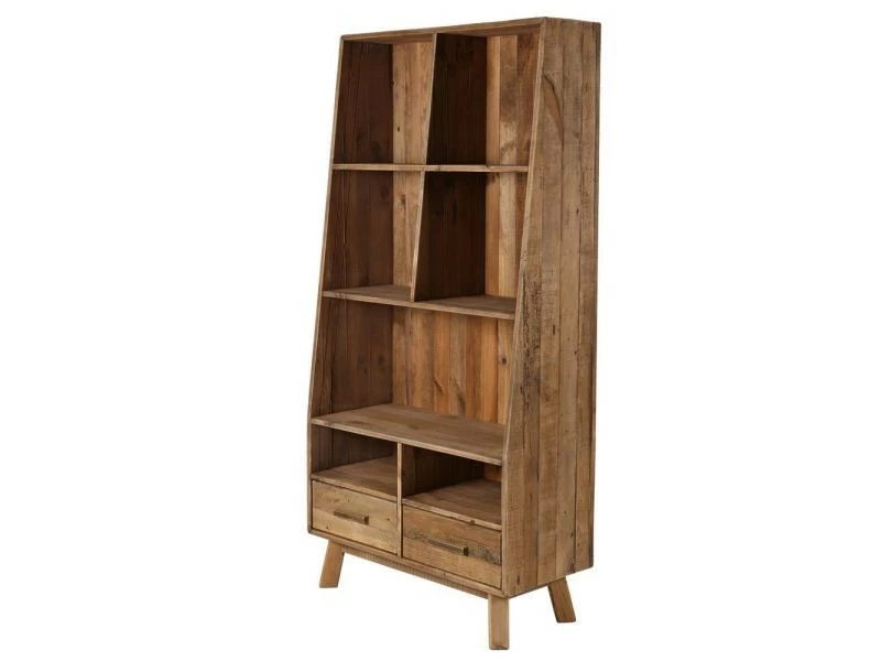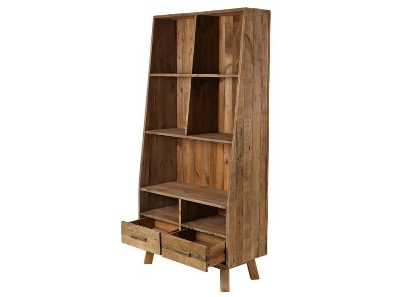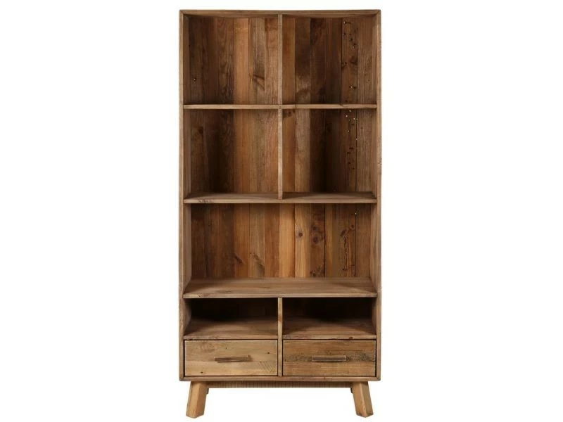 Bibliothèque en pin recyclé 7 niches et 2 tiroirs Nebraska // Dimensions : 90 x 40 x // Finition : // Couleur : Naturel foncé // Poids emballé : 47 kg // Utilsable en extérieur : Non // Informations additonnelles : Dimensions des tiroirs : 38 x 27 x 9,5 cm.