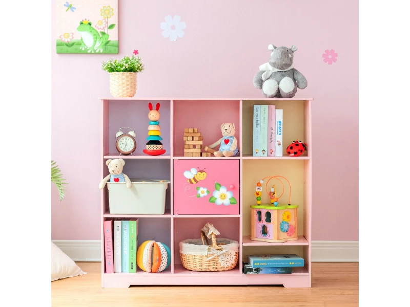- RANGEMENT SIMPLE ET FACILE – La bibliothèque dispose de 9 compartiments dont 1 avec un placard offrant beaucoup d’espace de rangement pour les jouets et les livres de votre enfant. La hauteur est également parfaite pour votre petit afin qu’il puisse accéder facilement à tous ses biens.