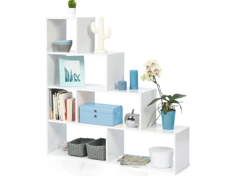 Cette étagère vous offre 6 niches de rangement de différentes tailles sur 4 niveaux pour s’adapter à vos objets et les mettre en valeur !