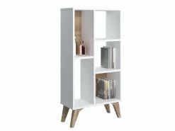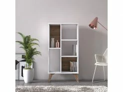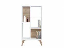 Bibliothèque essentielle et moderne développée verticalement avec cinq compartiments ouverts de différentes tailles : la structure est blanche avec des détails couleur noyer, elle est surélevée du sol avec quatre pieds couleur chêne. Cette bibliothèque aux lignes essentielles et modernes est parfaite pour être placée dans des environnements modernes et lumineux. Grâce à ses dimensions il est parfait pour être placé dans le salon, dans la chambre ou dans un couloir : ses compartiments ouverts sont parfaits pour accueillir vos livres ou vos bibelots, personnalisant ainsi la structure. Entièrement construit en aggloméré mélaminé, il est durable dans le temps et résistant aux chocs et rayures. Dimensions en cm : 55 x 25 x 106