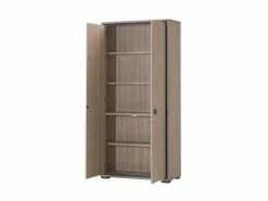 Design minimaliste et indémodable pour cette bibliothèque 2 portes battantes mettant en oeuvre des matériaux de qualité.