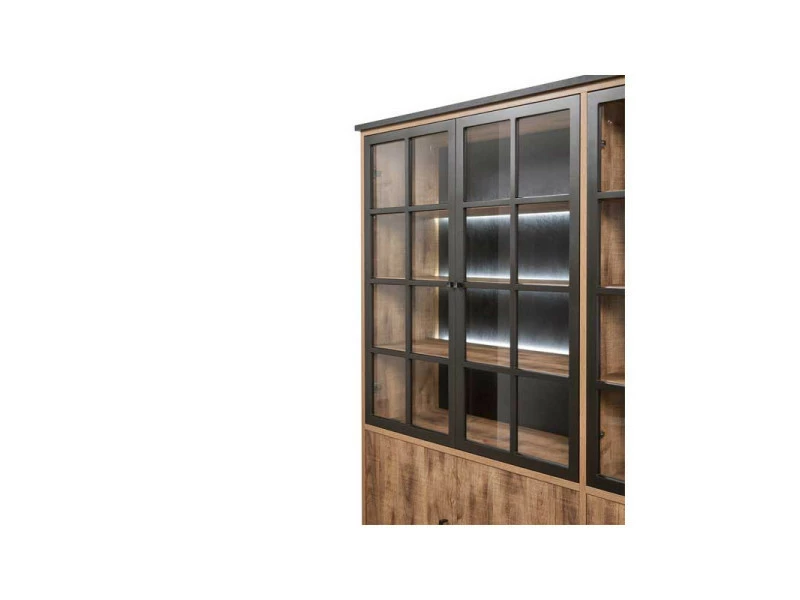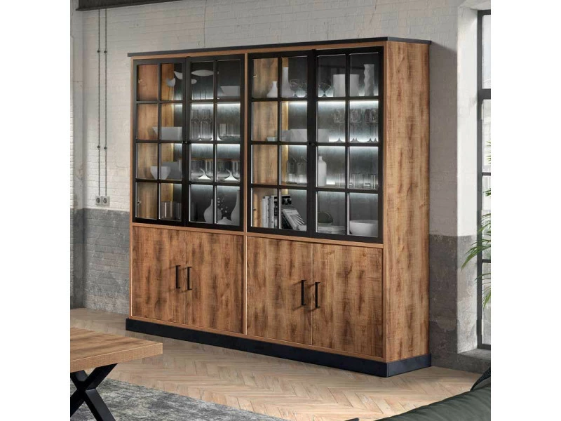 Modernisez sagement votre pièce avec cette bibiothèque 8 portes très nettement inspirée du style mobilier Industriel.