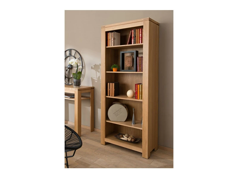Structure en chêne, plateaux MDF plaqués chêne. Teinte chêne clair.