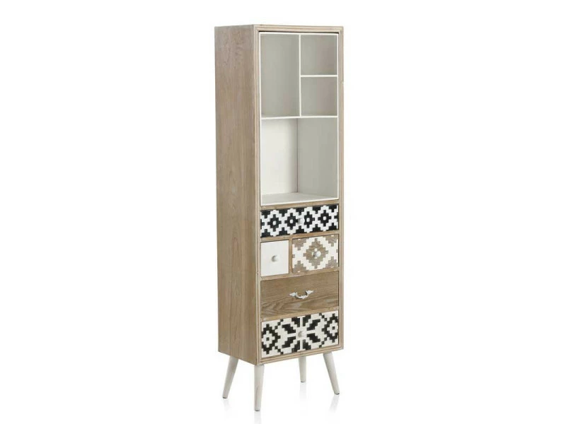 Amateurs de bois au veinage bien présent, cette bibliothèque 5 tiroirs4 niches au look exclusif est faite pour vous.