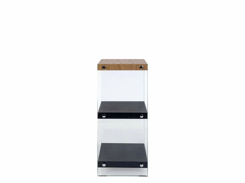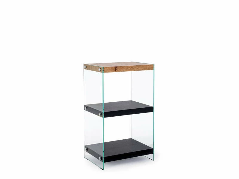 Avec ses lignes pures et son design tendance, l’étagère ELENA saura sublimer votre pièce. Composée de trois niveaux, l’étagère ELENA vous permettra de ranger vos livres ou encore vos objets décoratifs. Ses côtés en verre trempés de 12mm ainsi que ses plateaux en noir et bois MDF revêtu en papier mélanimé effet bois lui donnent beaucoup de charme !