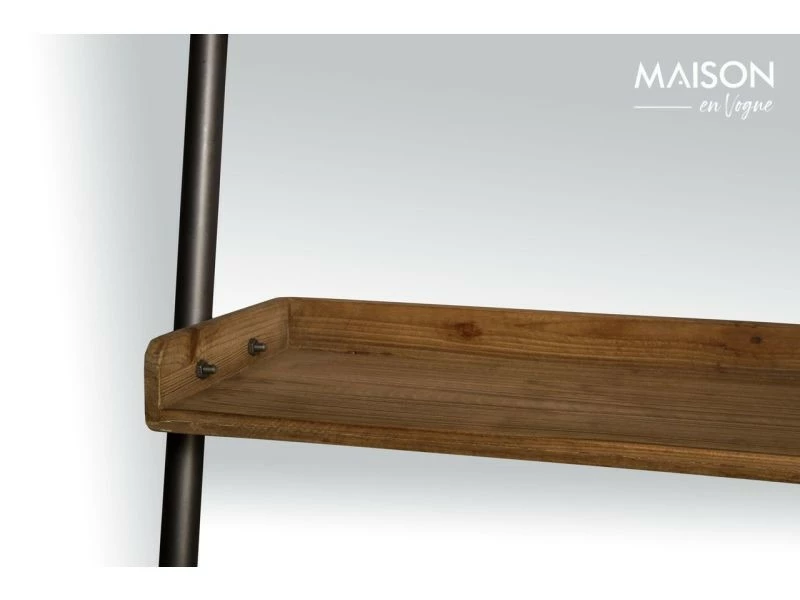 Une étagère échelle robuste en bois massif. L’étagère Wally allie praticité et modernité. Elle associe le bois et l’acier noir pour créer un style vintage unique. Elle peut être utilisée comme bibliothèque dans votre salle à manger ou comme espace de rangement supplémentaire dans votre cuisine. Grâce à ses 5 étagères en bois massif et à son cadre en acier, ce meuble est très solide. Il peut supporter un poids de 80 kg. Pour vous offrir une grande stabilité, cette étagère se fixe directement dans le mur.