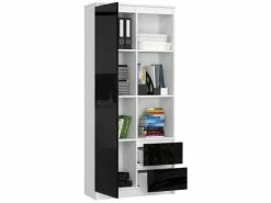 La bibliothèque de bureau est faite en panneau stratifiĂ© solide de 16 mm d’Ă©paisseur qui rĂ©siste Ă l’abrasion. Grâce Ă son aspect universel, ce meuble s’intègre parfaitement Ă tous les intĂ©rieurs. Il conviendra parfaitement Ă un bureau Ă©lĂ©gant, Ă un salon minimaliste ou mĂŞme Ă une chambre d’enfant. La bibliothèque est Ă©quipĂ©e d’espaces ouverts et d’Ă©tagères qui sont l’endroit idĂ©al pour y mettre des souvenirs et des bibelots. Deux tiroirs spacieux seront l’endroit idĂ©al pour ranger des documents ainsi que des objets pratiques, POINTS FORTS: Style moderne, 1 portes, 2 tiroirs, Design Ă©lĂ©gant et pratique, Faces sans poignĂ©e, Finition des façades : brillant, CARACTÉRISTIQUES TECHNIQUES: Hauteur : 180cm, Largeur : 80cm, Profondeur : 35 cm, MatĂ©riau : panneau laminĂ©, Ă€ monter soi-mĂŞme, Photos des articles le plus fidèle possible, mais restant non contractuelles, les nuances de couleur et le rendu des matières prĂ©sentĂ©s Ă l’Ă©cran pouvant ĂŞtre diffĂ©rents de la rĂ©alitĂ©