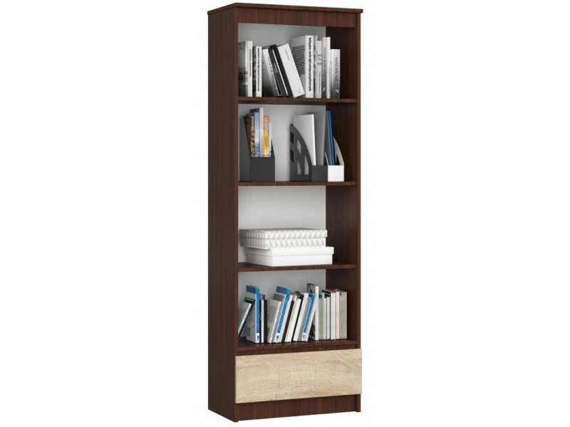 Cette bibliothèque Ă©lĂ©gante renouvellera l’intĂ©rieur de n’importe quel bureau ou pièce. Le design est minimaliste mais robuste et durable. Elle convient pour le rangement de livres, de classeurs ou d’accessoires de bureau et de cadres photo. Les dimensions ergonomiques et le design moderne permettent de meubler librement la pièce. Le corps du meuble est de couleur wengĂ©, tandis que les façades des tiroirs sont de couleur sonoma., POINTS FORTS: Style moderne, 4 tablettes, 1 tiroir, Construction pratique et Ă©lĂ©gante, Face sans poignĂ©e, RĂ©sistance Ă©levĂ©e aux rayures, CARACTÉRISTIQUES TECHNIQUES: Hauteur : 180 cm, Largeur : 60cm, Profondeur : 35cm, MatĂ©riau : panneau laminĂ©, Ă€ monter soi-mĂŞme, Photos des articles le plus fidèle possible, mais restant non contractuelles, les nuances de couleur et le rendu des matières prĂ©sentĂ©s Ă l’Ă©cran pouvant ĂŞtre diffĂ©rents de la rĂ©alitĂ©