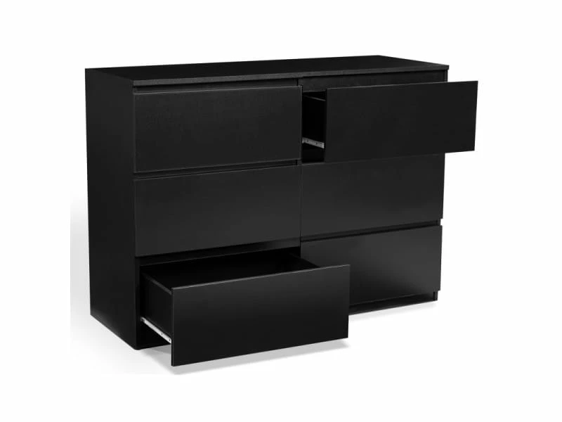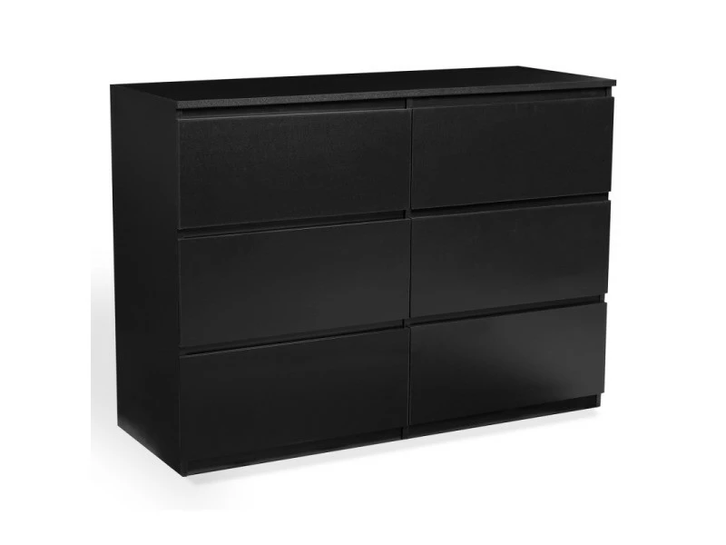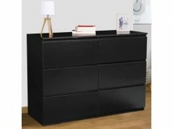 Meuble fonctionnel par excellence, la commode 6 tiroirs TOMI sera l’alliée parfaite du rangement de votre chambre à coucher ou de votre bureau ! Avec son coloris noir élégant, chic et intemporel, elle s’intégrera à toutes les pièces, tout en apportant un côté pratique et design à votre intérieur.