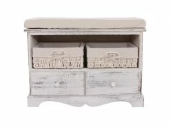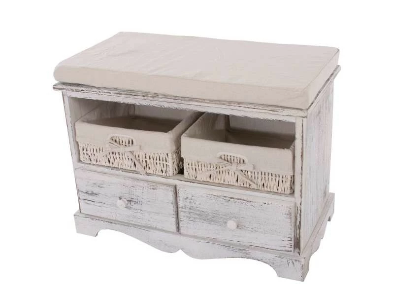 Commode /banc / 2 paniers, 2 tiroirs, shabby, vintage, 62x33x42cm, blanc Contenu de la livraison: 1x commode / banc