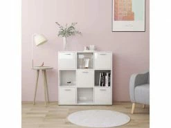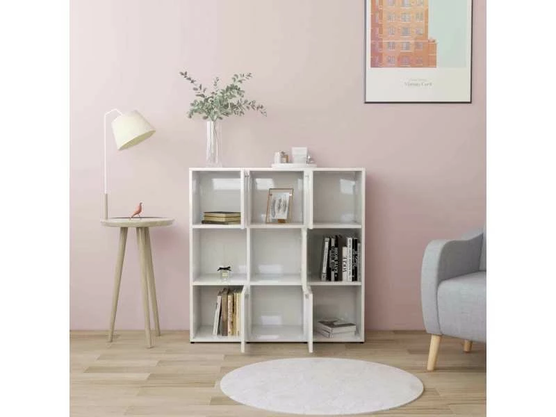 ICAVERNE Contemporain Étagères famille Riyad Bibliothèque Blanc brillant 90x30x90 cm Aggloméré Cette armoire à livres chic, avec un espace de rangement spacieux, rend votre pièce frappante et bien rangée ! L’armoire est faite d’aggloméré de qualité, ce qui la rend robuste et durable. L’étagère, comporte 9 compartiments, dont 5 avec portes, qui offre un grand espace de rangement pour garder vos magazines, livres, DVD, appareils multimédias et autres objets de décoration bien organisés et à portée de main. L’étagère à livres est facile à nettoyer avec un chiffon humide. Cette bibliothèque est également facile à assembler. » Couleur : blanc brillant Matériau : aggloméré Dimensions : 90 x 30 x 90 cm (l x P x H) Avec 9 compartiments carrés (5 compartiments avec portes) AVERTISSEMENT: Afin d’éviter qu’il ne bascule, ce produit doit être utilisé avec le dispositif de fixation murale fourni Vous trouverez ici plus de détails sur la façon d’empêcher vos meubles de basculer https://www..fr/media/wysiwyg/documents/prevent_tipping_over/FR.pdf »