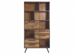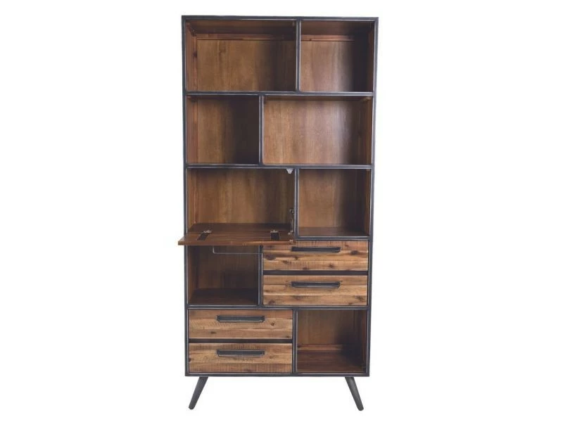 Bibliothèque bois et métal 7 niches Cusco // Dimensions : 95 x 35 x // Finition : // Couleur : Naturel foncé // Poids emballé : 74 kg // Utilsable en extérieur : Non // Informations additonnelles : Dimensions grandes niches : 53 x 34 x 33.5 cm