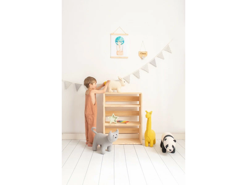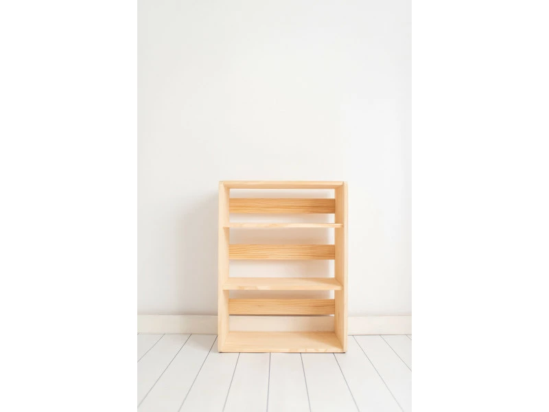 Notre bibliothèque de style Montessori avec quatre étagères entièrement en bois de pin sans traitement ni peintures totalement écologiques, elle est à monter soi-même, les instructions de montage et d’ancrage au mur sont incluses. C’est un accessoire idéal pour toute chambre d’enfant où la lecture et l’autonomie sont encouragées dès le plus jeune âge, une expérience stimulante pour les plus petits de la maison.