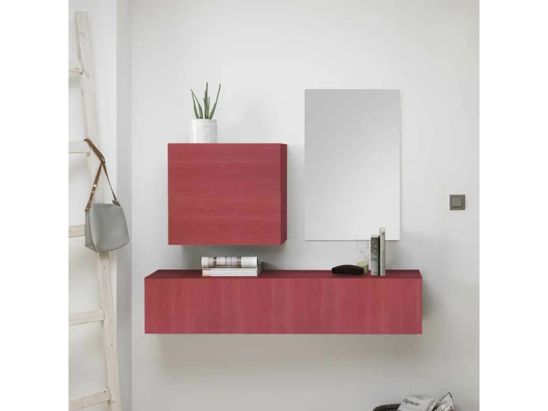 Pour apporter de la couleur dans votre entrée, les deux meubles à suspendre mettent en avant une finition Bois Rouge qui laisse transparaître un veinage plus vrai que nature.