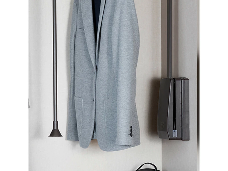 L’accessoire latéral pour penderie Hang permet l’installation de la penderie rabattable Hang dans des armoires avec portes à charnières. Fabriqué en plastique, il est fourni avec vis de montage.