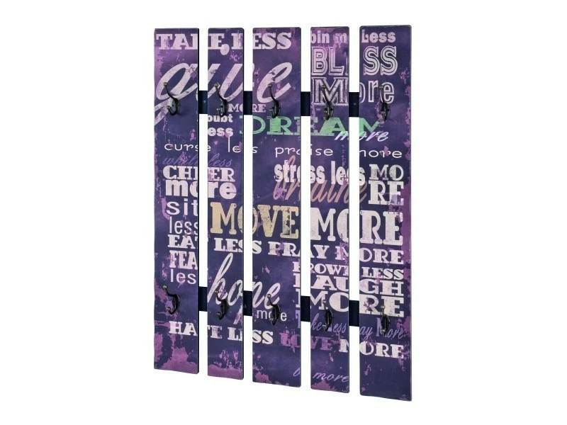Esthetique NUANCEMEUBLE garderobe murale Banjul vintage L70 x P9 x H100 cm MDF avec décor écriture en style vintage, avec 10 crochets 7.1kg