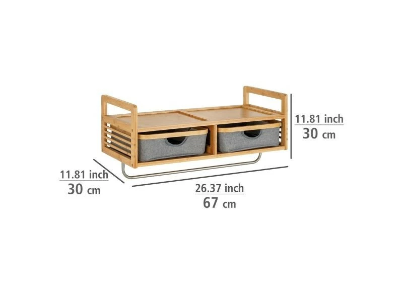Le porte-vĂŞtements mural originale Bahari s’utilisera de manière polyvalente entre vos quatre murs. L’endroit le plus apprĂ©ciĂ© pour une garde-robe est sans doute le couloir. Ici, l’Ă©tagère murale avec ses deux tiroirs amovibles en gris et la tablette offre beaucoup de place pour les accessoires tels que les gants, les bonnets, les Ă©charpes, les foulards, les chapeaux, ainsi que la dĂ©coration. De nombreux vĂŞtements tels que les manteaux et les vestes peuvent donc ĂŞtre accrochĂ©s Ă portĂ©e de main sur la tringle Ă vĂŞtements en acier inoxydable au fini argent mat. L’Ă©tagère murale fait Ă©galement bonne figure en tant qu’Ă©tagère de salle de bain pour les produits de soins, les produits cosmĂ©tiques et les serviettes. Vous disposerez d’un vĂ©ritable accessoire, aussi pratique qu’Ă©lĂ©gant pour votre chambre ou votre entrĂ©e. Est fabriquĂ© en bambou Ă rĂ©gĂ©nĂ©ration rapide, acier inox et polyester (100%) d’entretien facile.