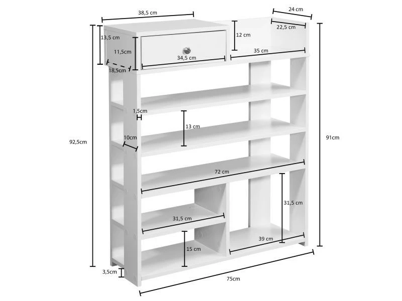 - Une étagère du milieu (LxHxP): 39 x 31,5 x 22,5 cm