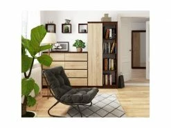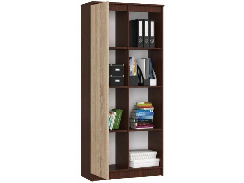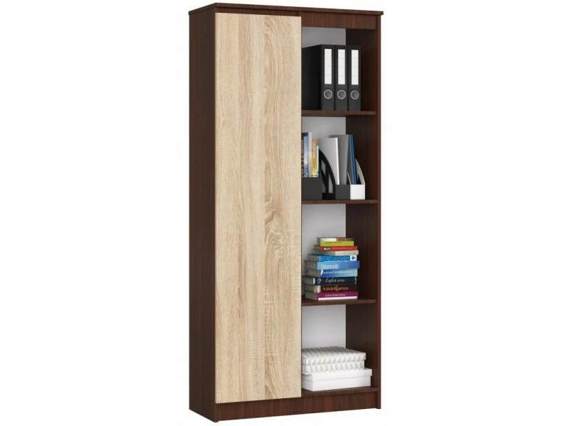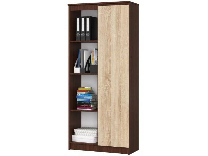 Ce meuble trouvera sa place dans toutes les pièces d’habitation, ainsi que dans les intĂ©rieurs de bureaux oĂą il pourra facilement accueillir tous les livres, classeurs et documents. Cette bibliothèque belle et pratique est facile Ă nettoyer et sa surface est très rĂ©sistante aux rayures. Le produit prĂ©sentĂ© comporte 8 Ă©tagères, dont 4 sont dans un espace fermĂ©. Le corps du meuble est de couleur wengĂ©, tandis que les façades des tiroirs sont de couleur sonoma., POINTS FORTS: Style moderne, 1 porte, 8 tablettes (dont 4 ouvertes), Design fonctionnel, Face sans poignĂ©e, RĂ©sistance Ă©levĂ©e aux rayures, CARACTÉRISTIQUES TECHNIQUES: Hauteur : 180cm, Largeur : 80 cm, Profondeur : 35cm, MatĂ©riau : panneau laminĂ©, Ă€ monter soi-mĂŞme, Photos des articles le plus fidèle possible, mais restant non contractuelles, les nuances de couleur et le rendu des matières prĂ©sentĂ©s Ă l’Ă©cran pouvant ĂŞtre diffĂ©rents de la rĂ©alitĂ©