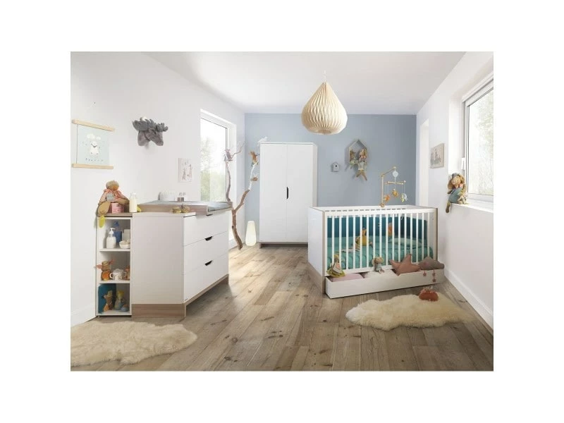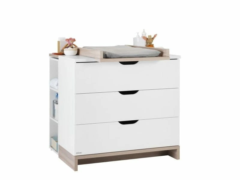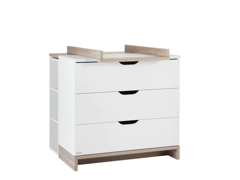 Complétez votre collection LILO et augmentez votre espace de rangement en ajoutant cette petite bibliothèque à votre commode.La petite bibliothèque bébé de notre collection Lilo vient se glisser grâce à sa petite taille derrière la commode trois tiroirs afin daugmenter facilement l’espace de rangement dans sa chambre. En effet, sa complémentarité avec la commode en fait un meuble dappoint où vous pourrez ranger les petites affaires de bébé, ses histoires, ses jouets, ses doudous Avec ses trois étagères, vous aurez la place de ranger tout ce que vous voulez dans la petite bibliothèque. Le bois utilisé est directement issu de forêts françaises gérées de manière durable. Caractéristiques techniques : Dimensions : 30 x 36 x 87 cm. Composition : panneaux de particules revêtus papier décor uni blanc. Coloris : Laquée blanc mat / sous bassement imitation cèdre. Entretien : nous vous recommandons de nettoyer vos meubles exclusivement à l’aide d’un chiffon doux imbibé d’eau savonneuse et de les essuyer avec un chiffon sec.