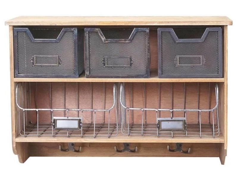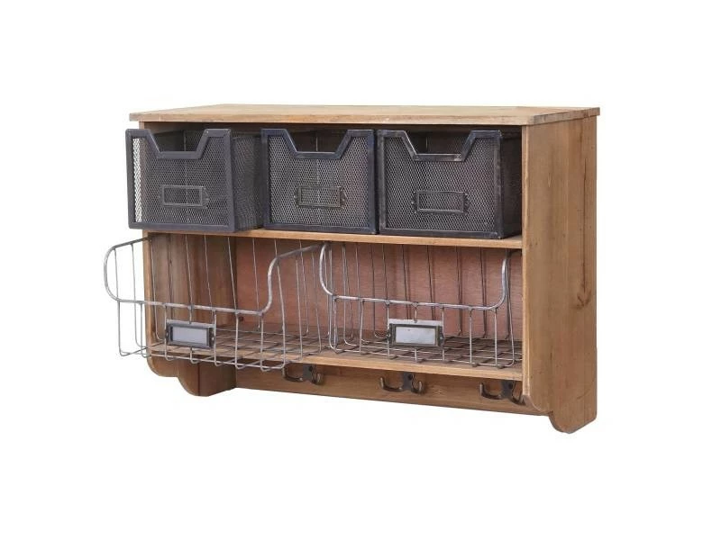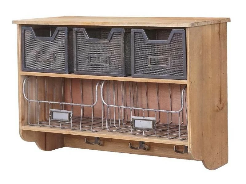 Garderobe murale HWC-A43, étagère, bois de sapin, vintage, patchwork 42x60x24cm