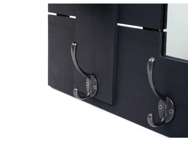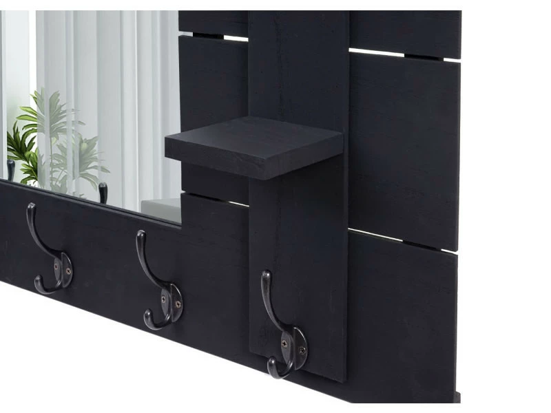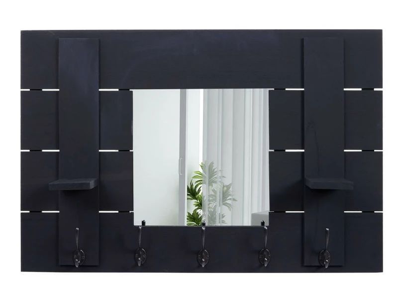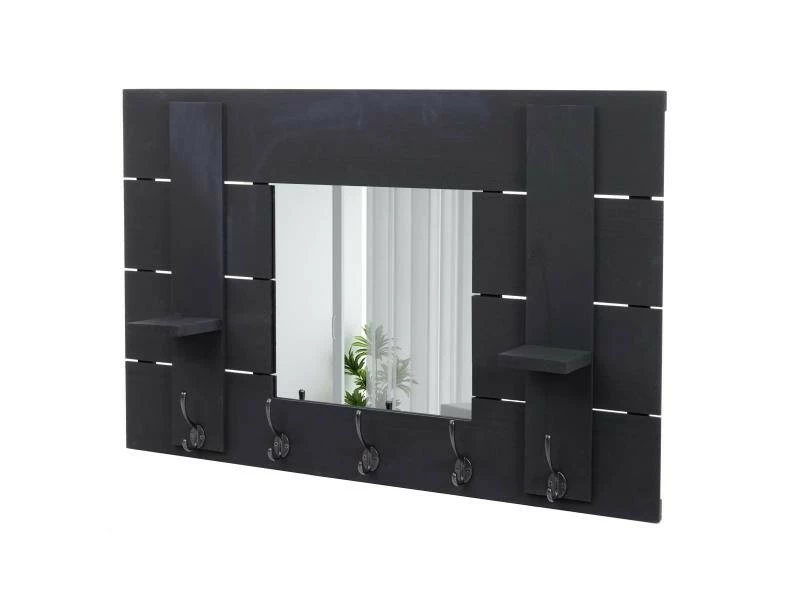 Garderobe murale HWC-C89 avec miroir, planche vestiaire, shabby, vintage, 5 crochets 90x60cm ~ gris foncé