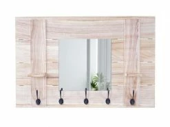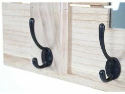Garderobe murale HWC-C89 avec miroir, planche vestiaire, style shabby chic, vintage, 5 crochets 90x60cm ~ brun naturel